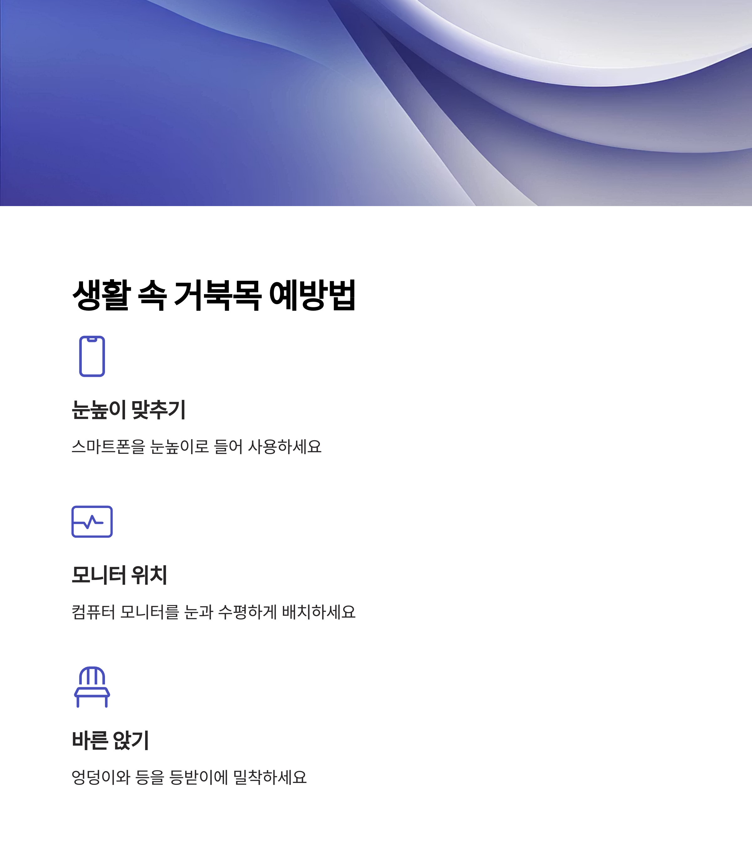 생활습관 개선은 거북목 교정의 핵심입니다.
