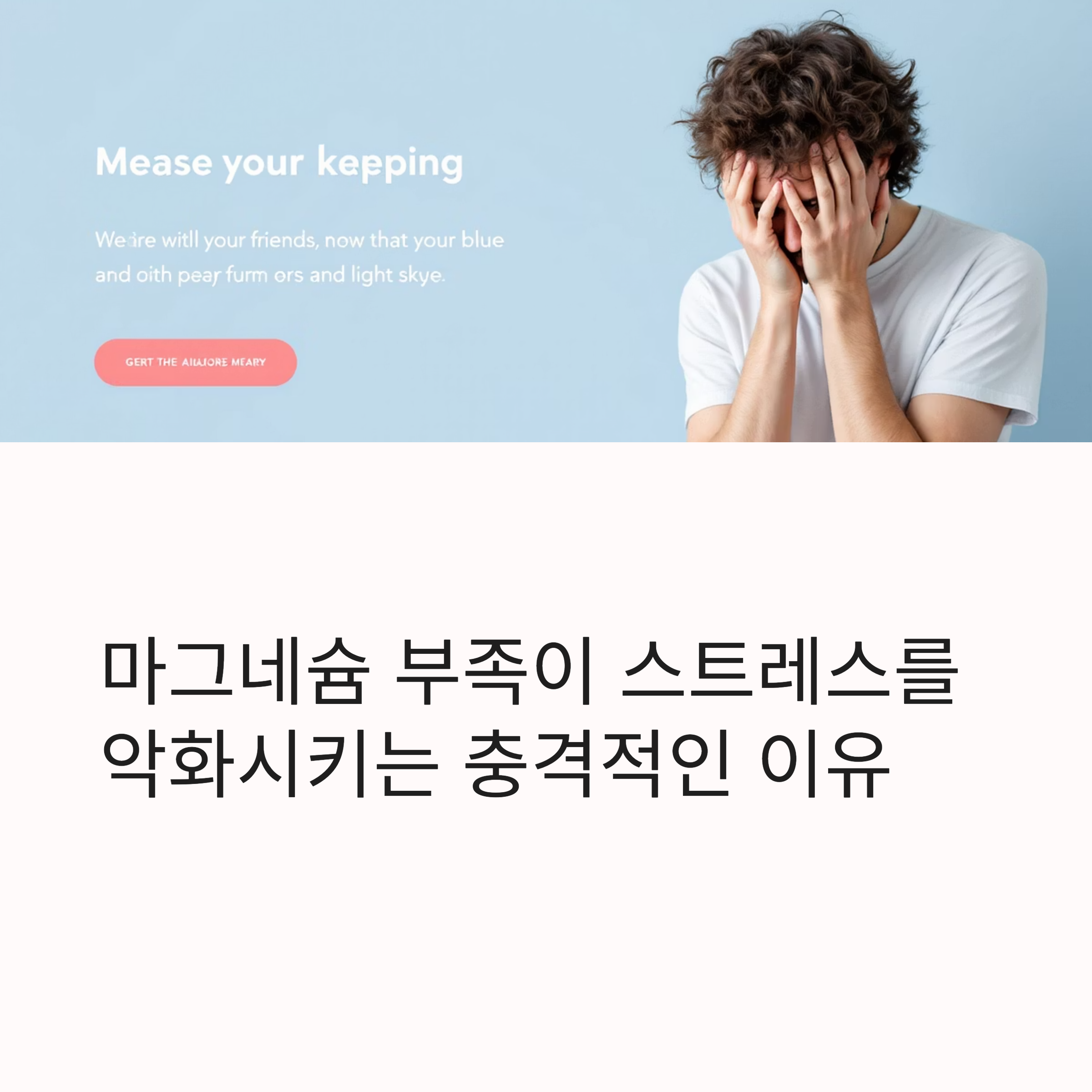 안녕하세요 여러분. 요즘 따라 사소한 일에도 예민해지고 쉽게 피곤해지는 느낌, 혹시 마그네슘 부족 때문일 수 있습니다. 우리 몸은 스트레스 상황에서 마그네슘을 더 많이 소모하게 되며, 그 결핍은 다시 스트레스를 유발하는 악순환을 만듭니다. 이번 글에서는 마그네슘과 스트레스의 연관성에 대해 최신 과학 근거를 바탕으로 살펴보겠습니다.
