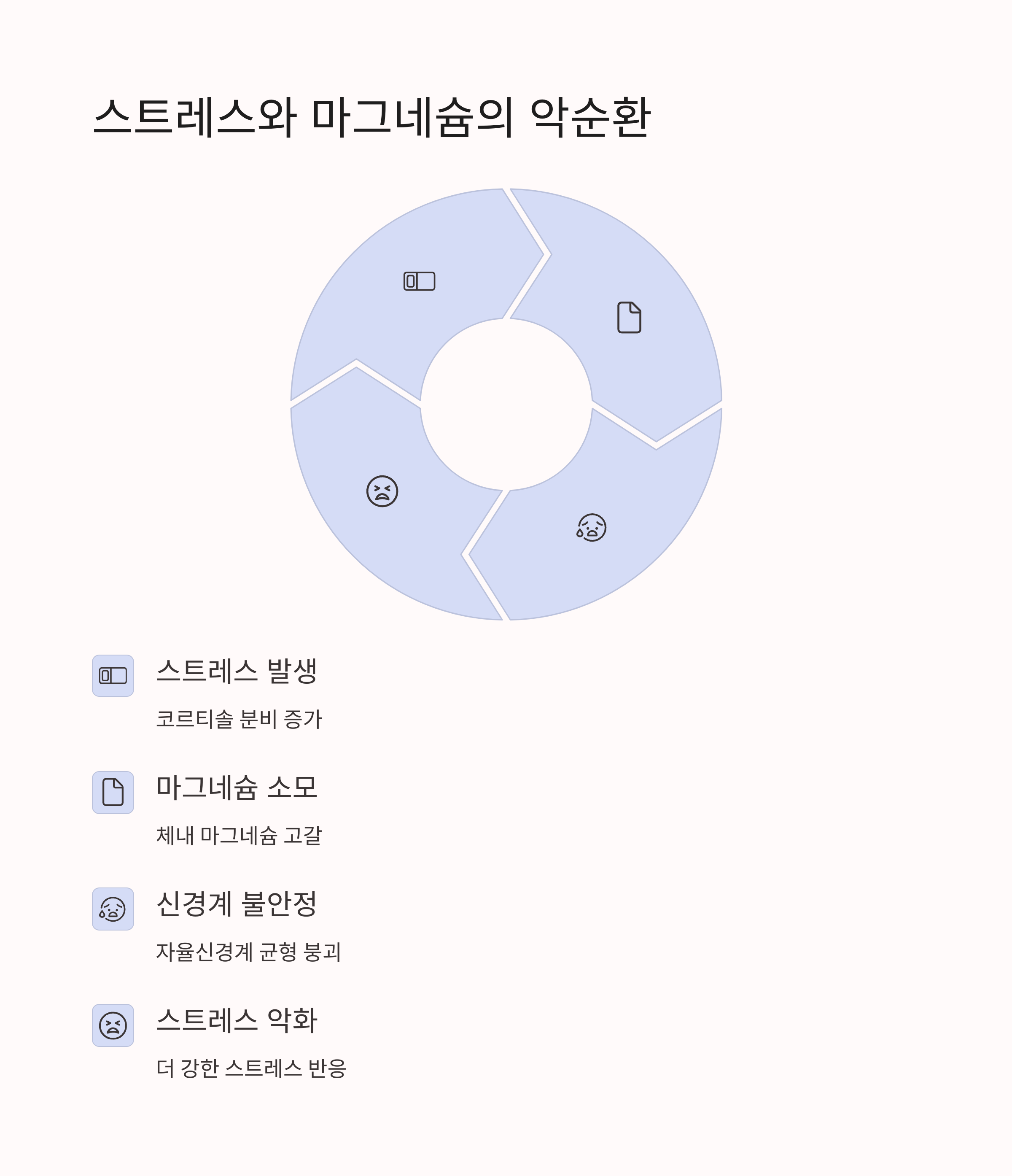 스트레스는 마그네슘 소모를 촉진해 결핍을 심화시킵니다.
