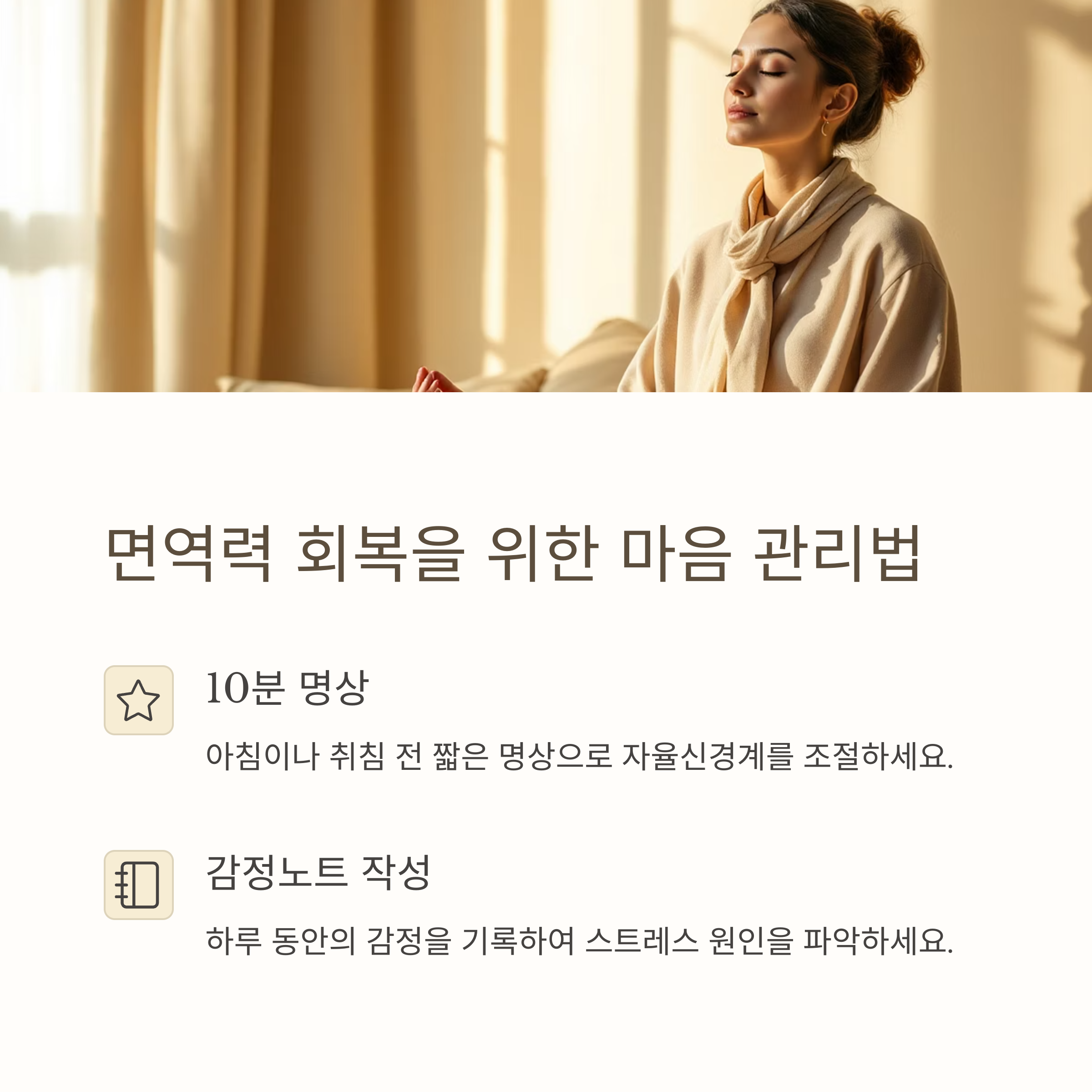 | 스트레스 호르몬 | 면역세포 억제 | 회복 루틴 |