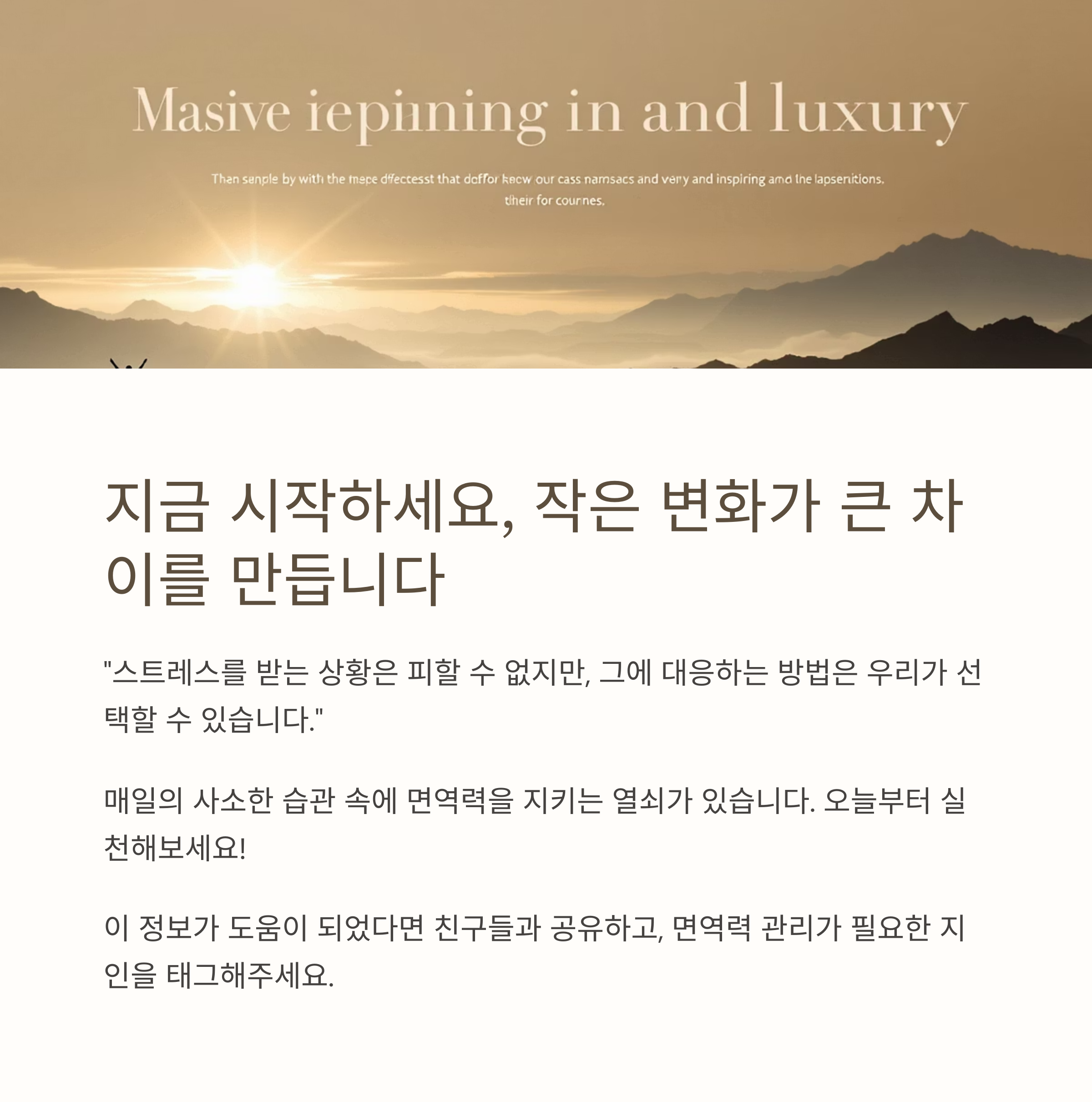 여러분은 스트레스를 어떻게 관리하고 계신가요? 여러분만의 면역력 회복 노하우가 있다면 댓글로 공유해 주세요. 함께 이야기를 나누며 서로의 건강을 지키는 따뜻한 공간이 되기를 바랍니다.