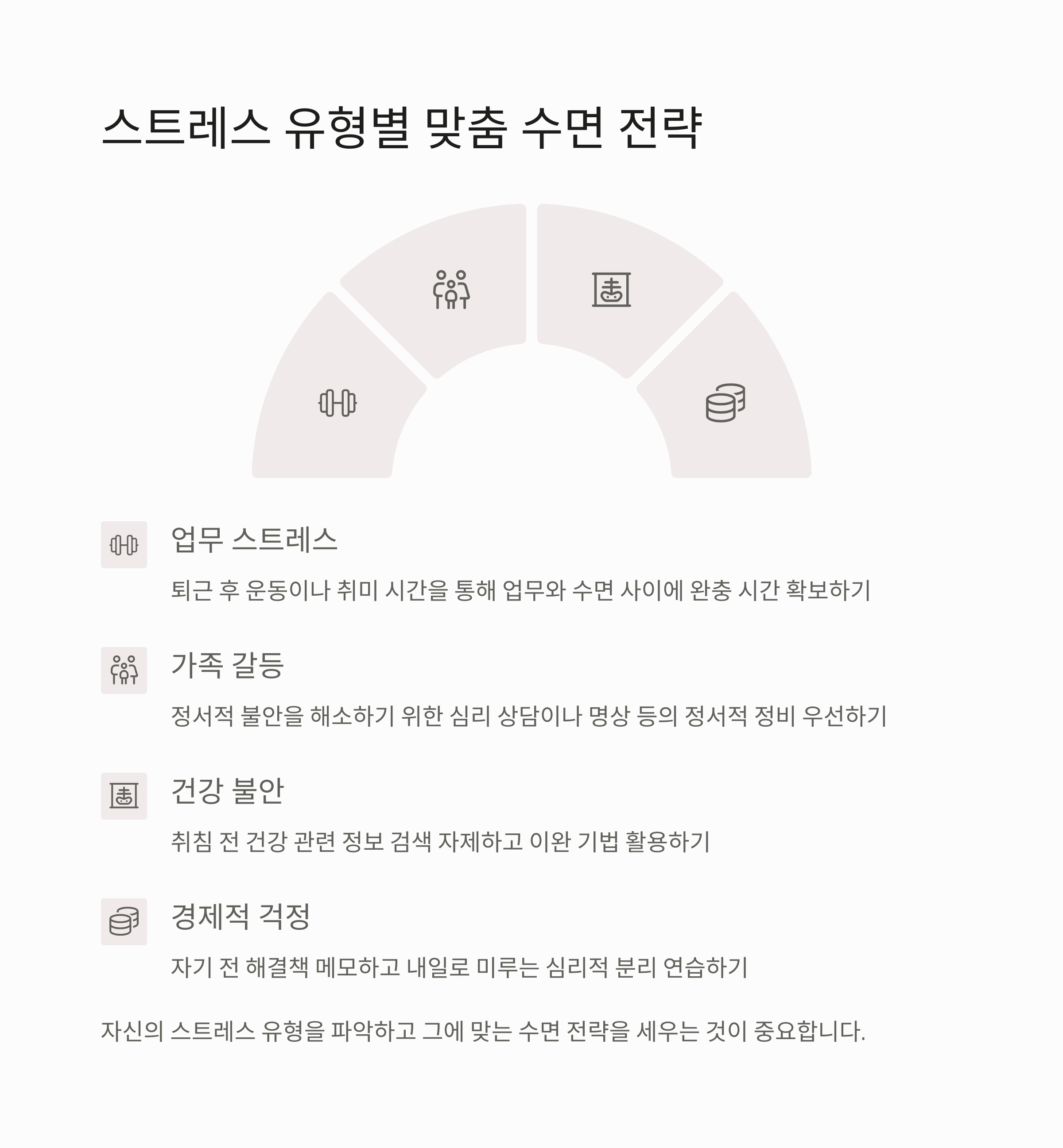 자신의 스트레스 유형을 파악하고 그에 맞는 수면 전략을 세우는 것이 중요합니다.