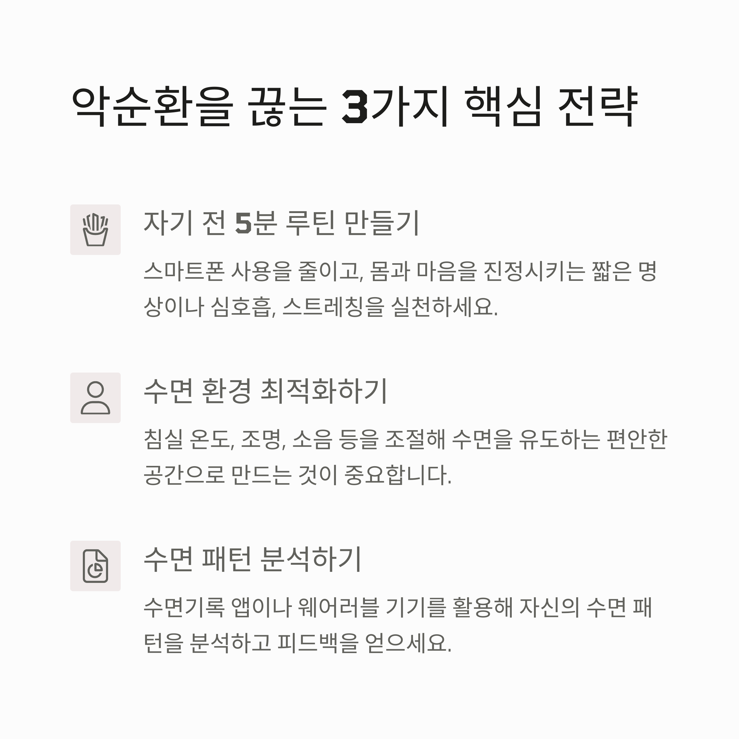 5분 루틴, 환경 점검, 수면 패턴 분석을 추천합니다.