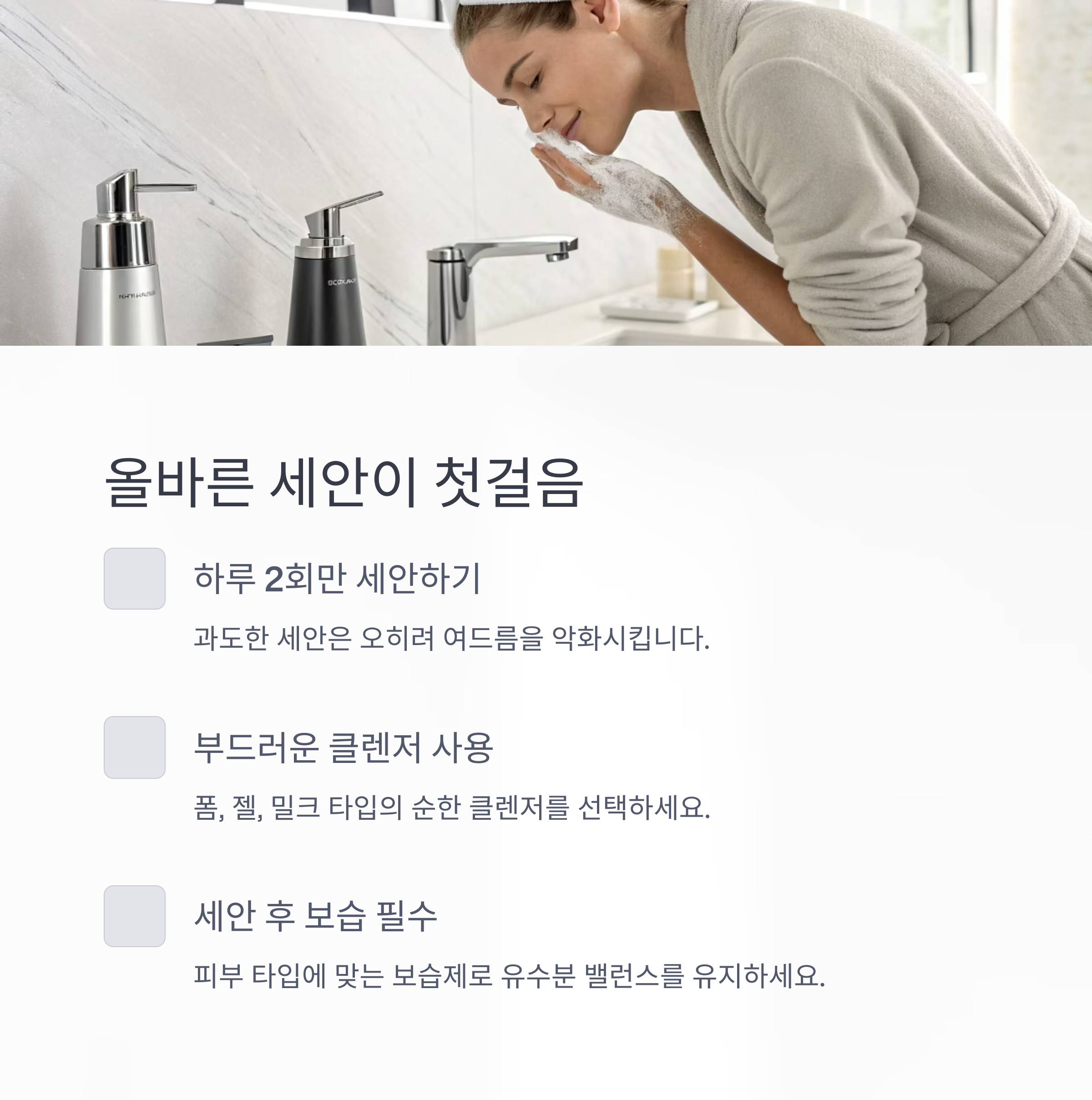 하루 두 번, 자극 없는 세안이 기본입니다
