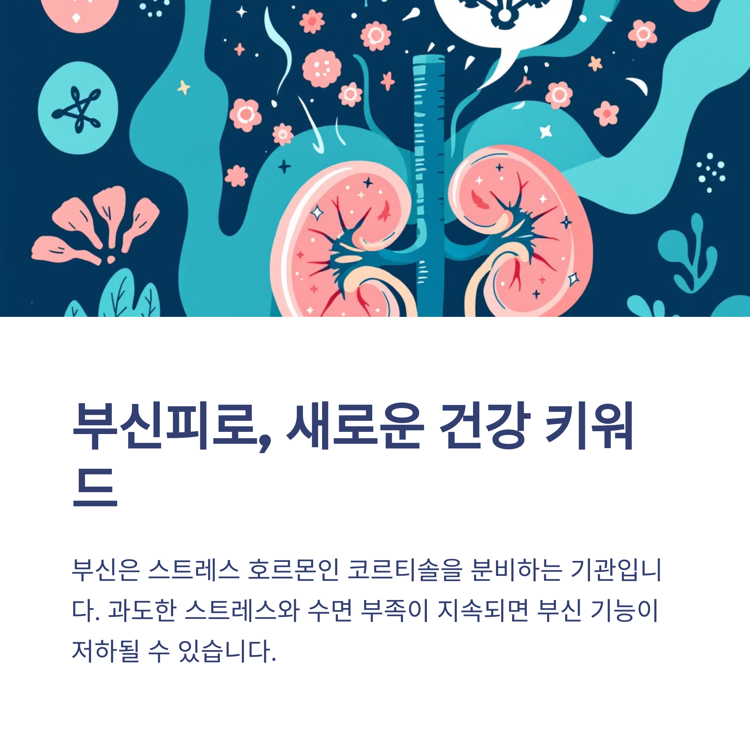 부신은 스트레스 호르몬인 코르티솔을 분비하는 기관인데, 과도한 스트레스와 수면 부족이 지속되면 부신의 기능이 저하될 수 있습니다.