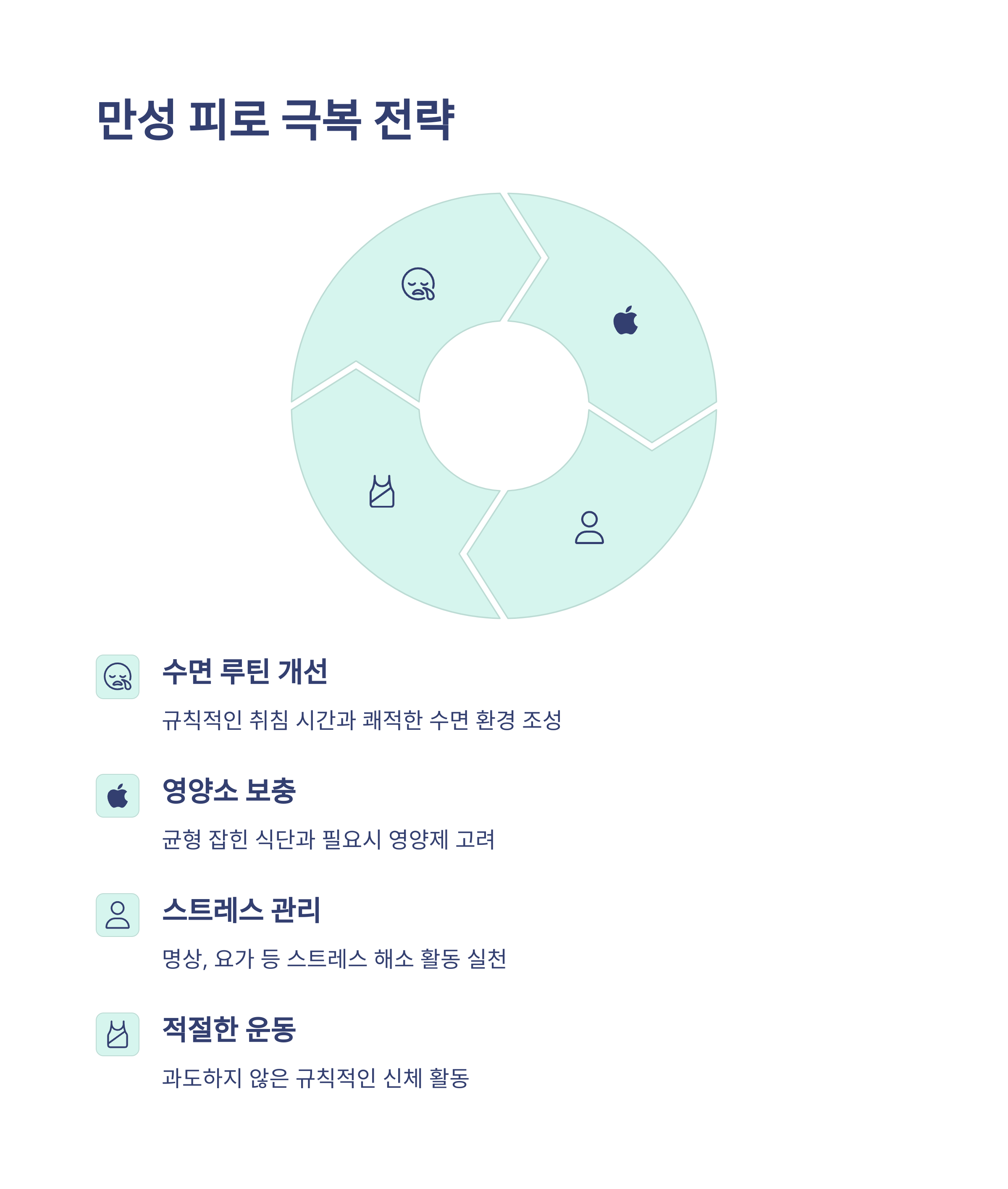 여러분의 몸이 보내는 피로 신호를 가볍게 여기지 말고, 수면 환경을 개선하고 스트레스를 줄이며 부족한 영양소를 채워나가는 노력이 필요합니다.