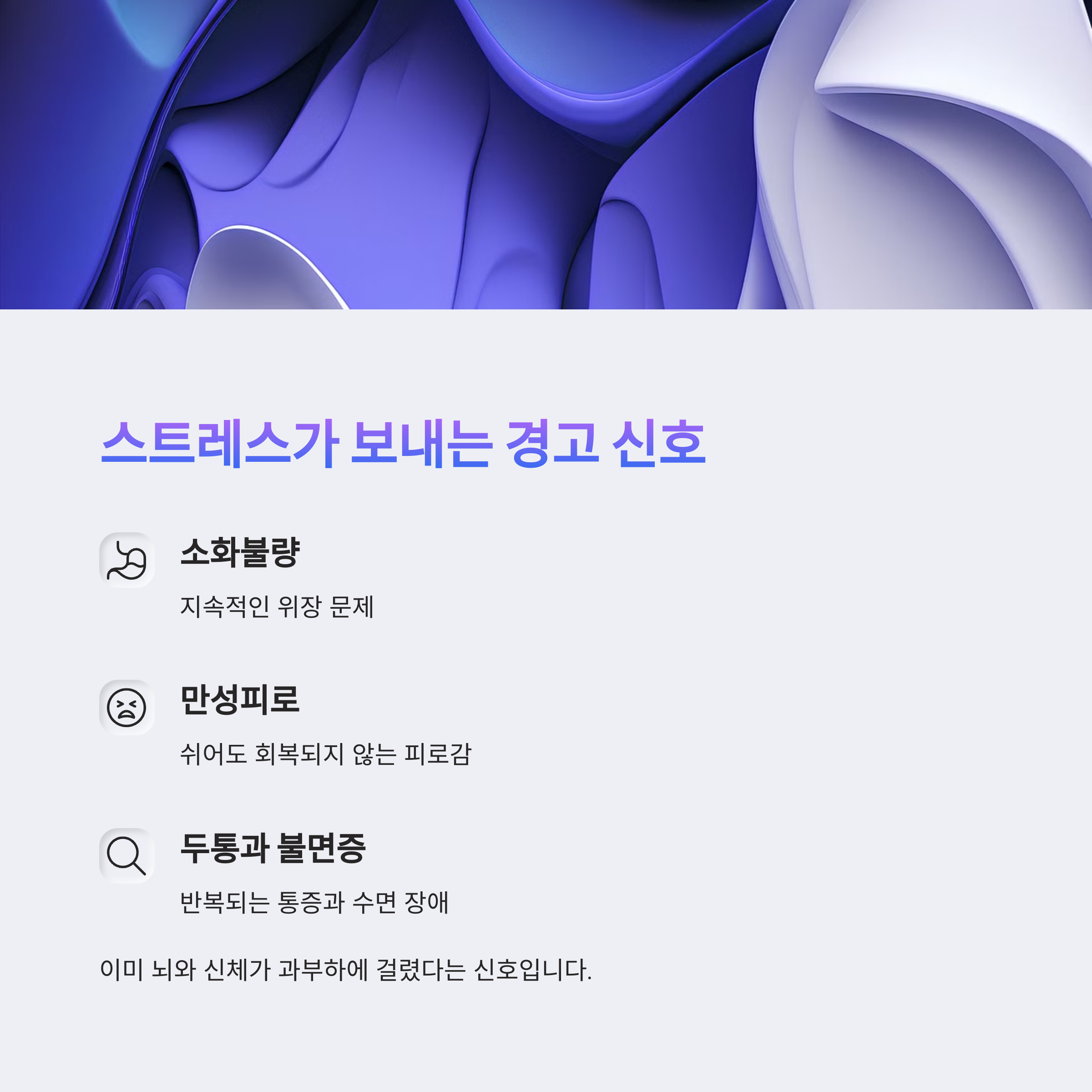 소화불량, 만성피로, 불면증, 두통 등은 이미 뇌와 신체가 과부하에 걸렸다는 신호입니다.