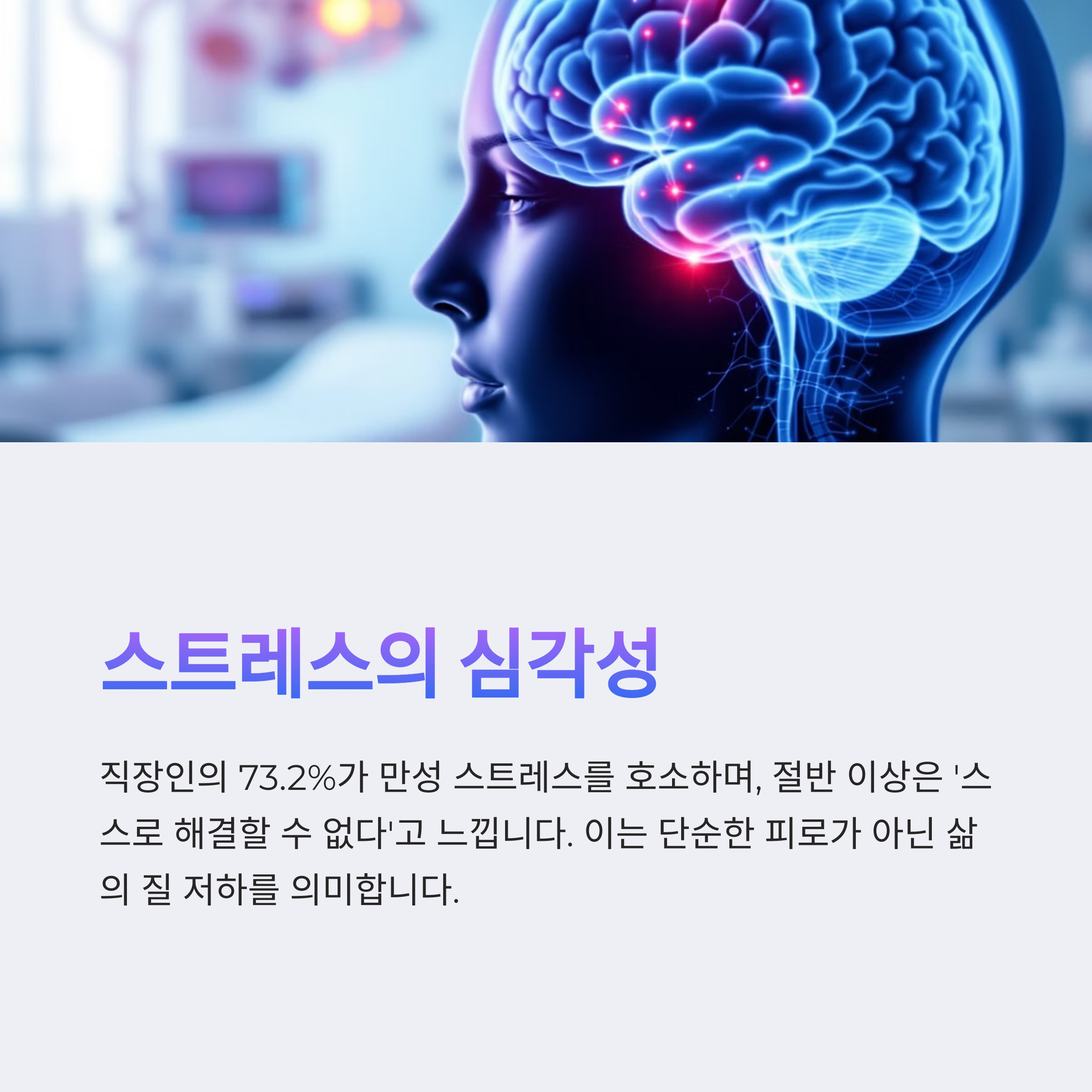 2025년 현재, 국내 연구 결과에 따르면 직장인의 73.2%가 만성 스트레스를 호소하고 있으며