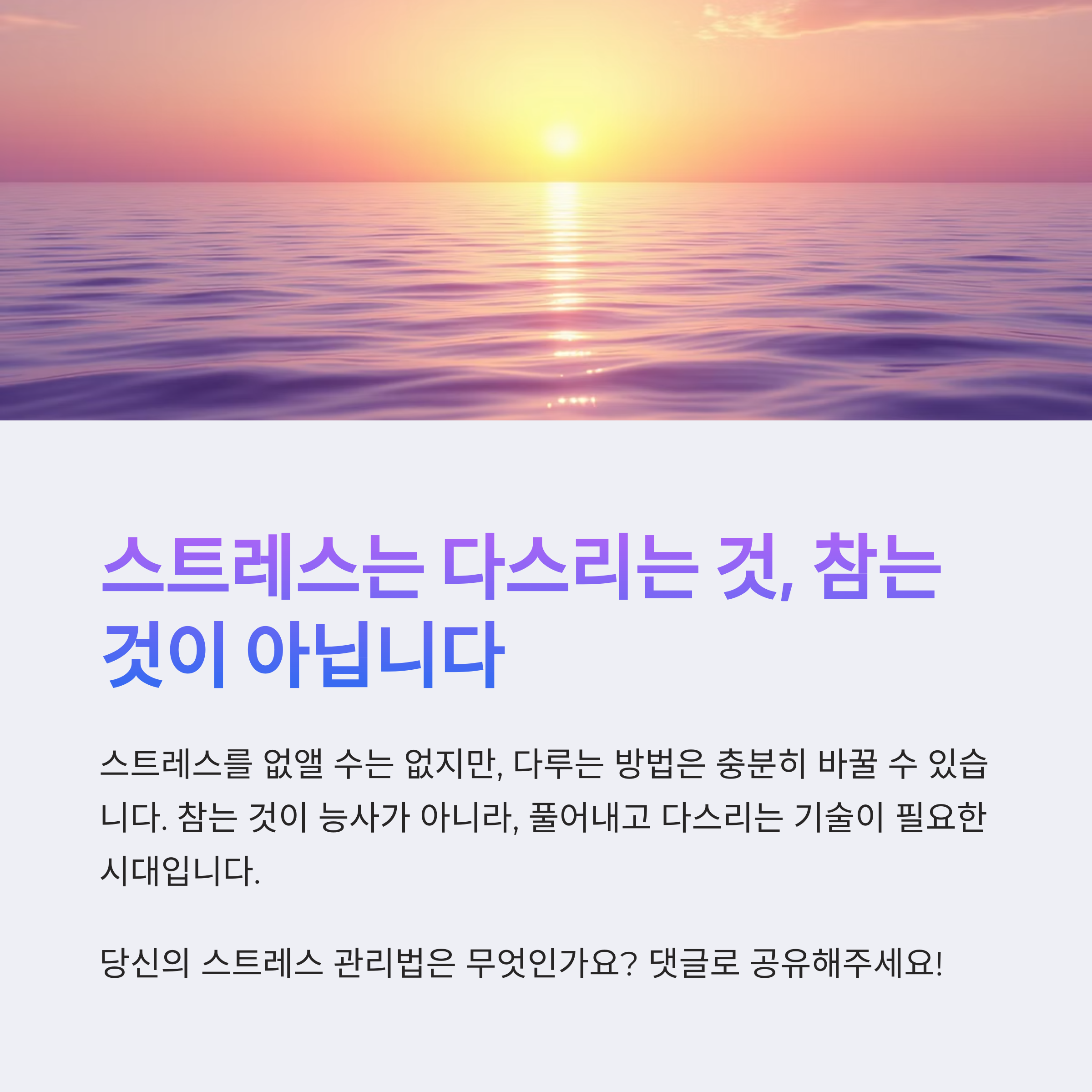 하지만 우리는 이제 그 스트레스를 참는 대신, 이해하고 다스리는 방법을 배워야 할 때입니다.