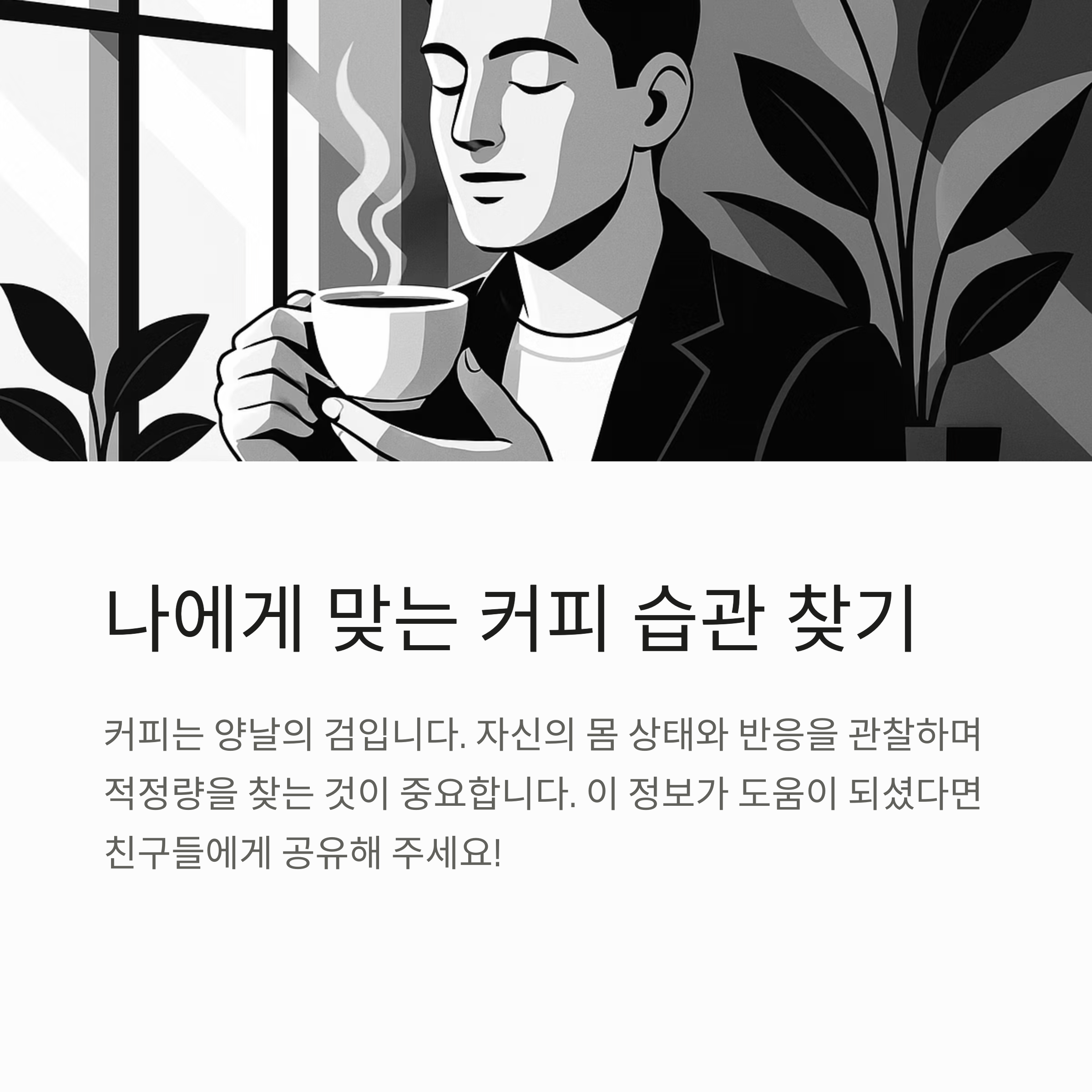 - 적정량 커피(1~3잔): 기분 상승, 인지 기능 강화, 심장 건강 향상