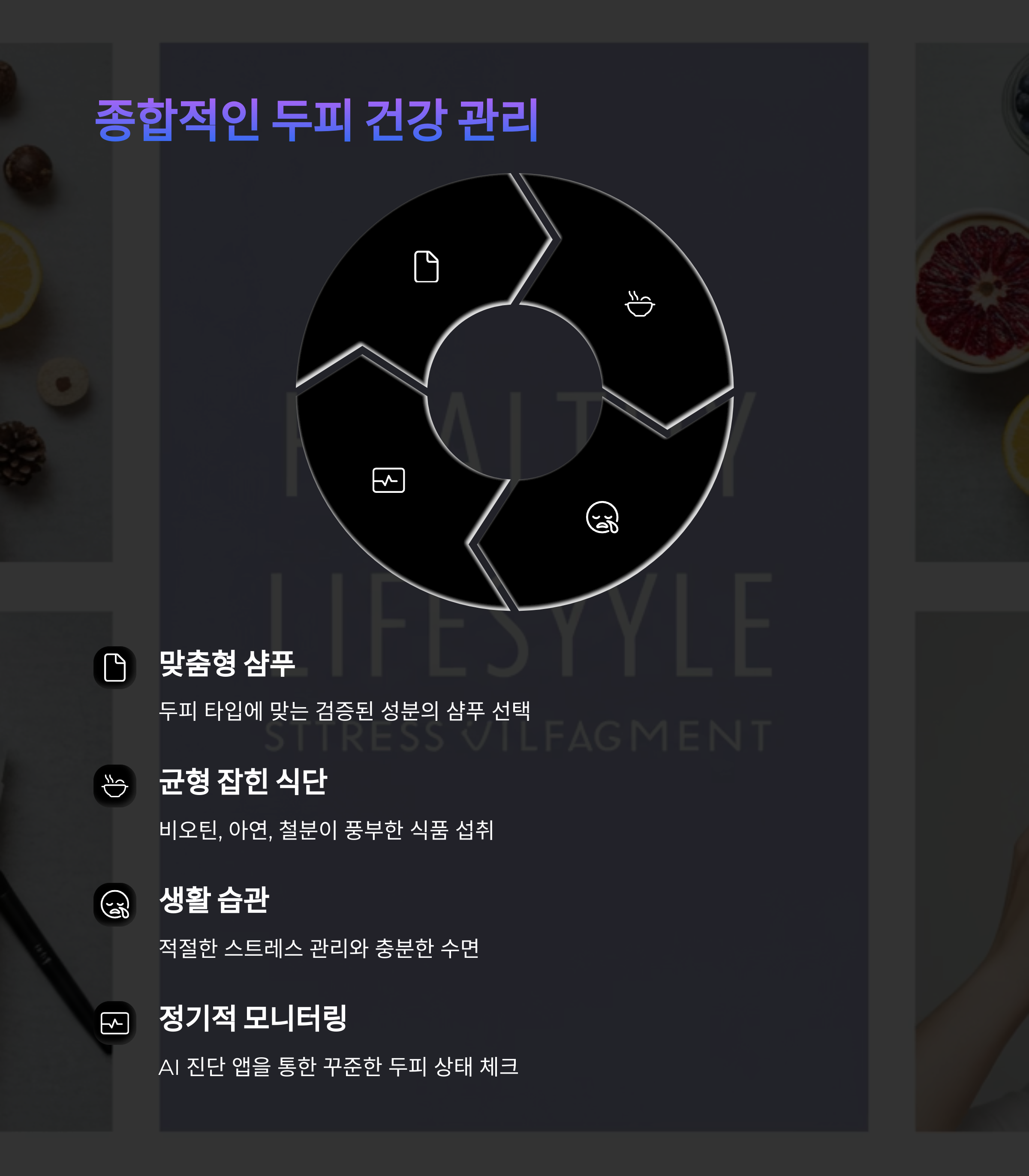 AI 앱으로 두피 상태를 집에서도 쉽게 확인 가능합니다.