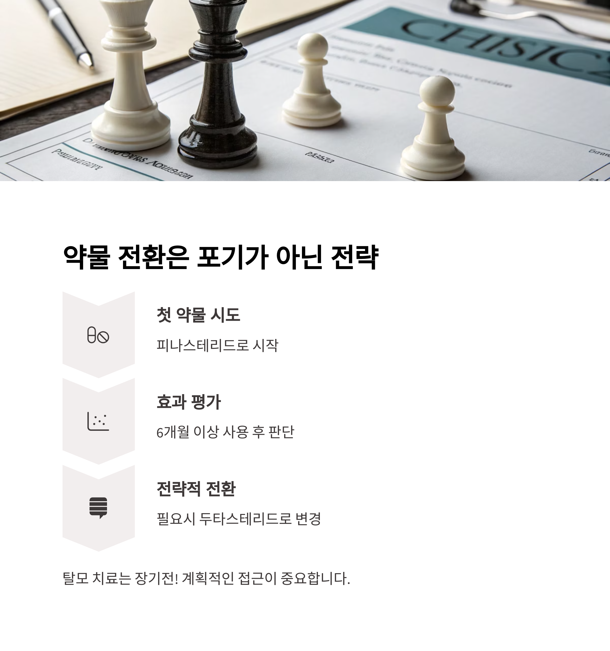 이 글은 ‘약물 전환’이 필요한 시점과 두타스테리드 선택 기준에 대해 안내합니다.