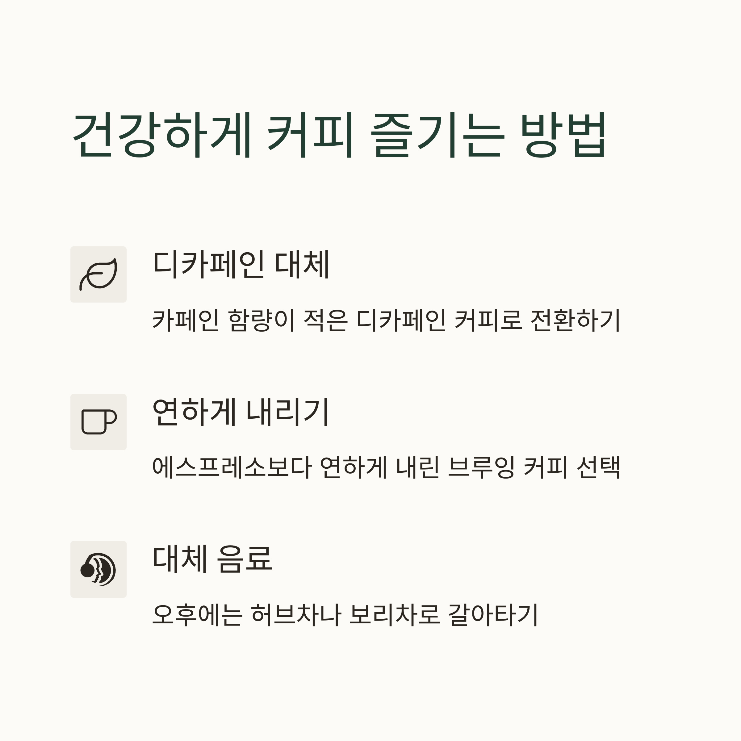 카페인 과다 신호를 체크하고, 적절한 섭취 루틴을 갖는 것이