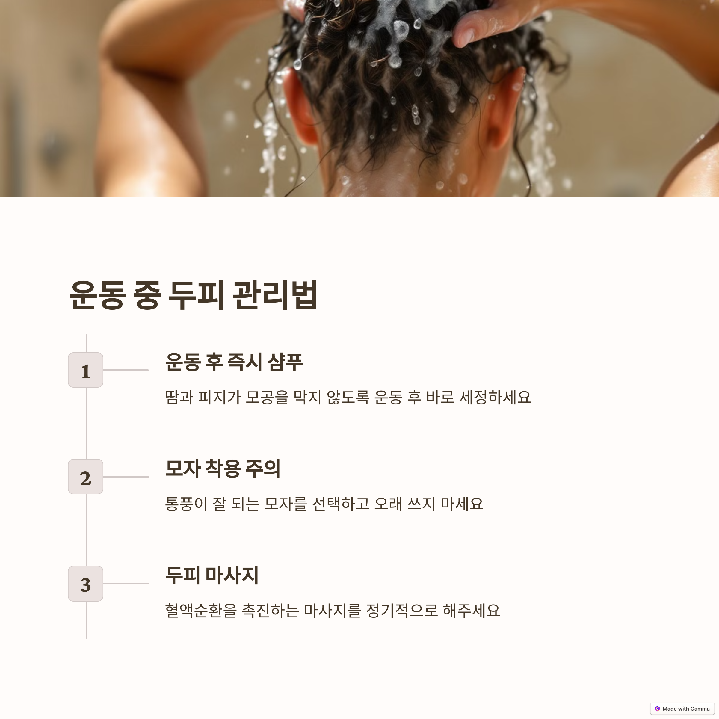 | 두피 관리 | 운동 후 두피 청결 유지는 매우 중요합니다. |