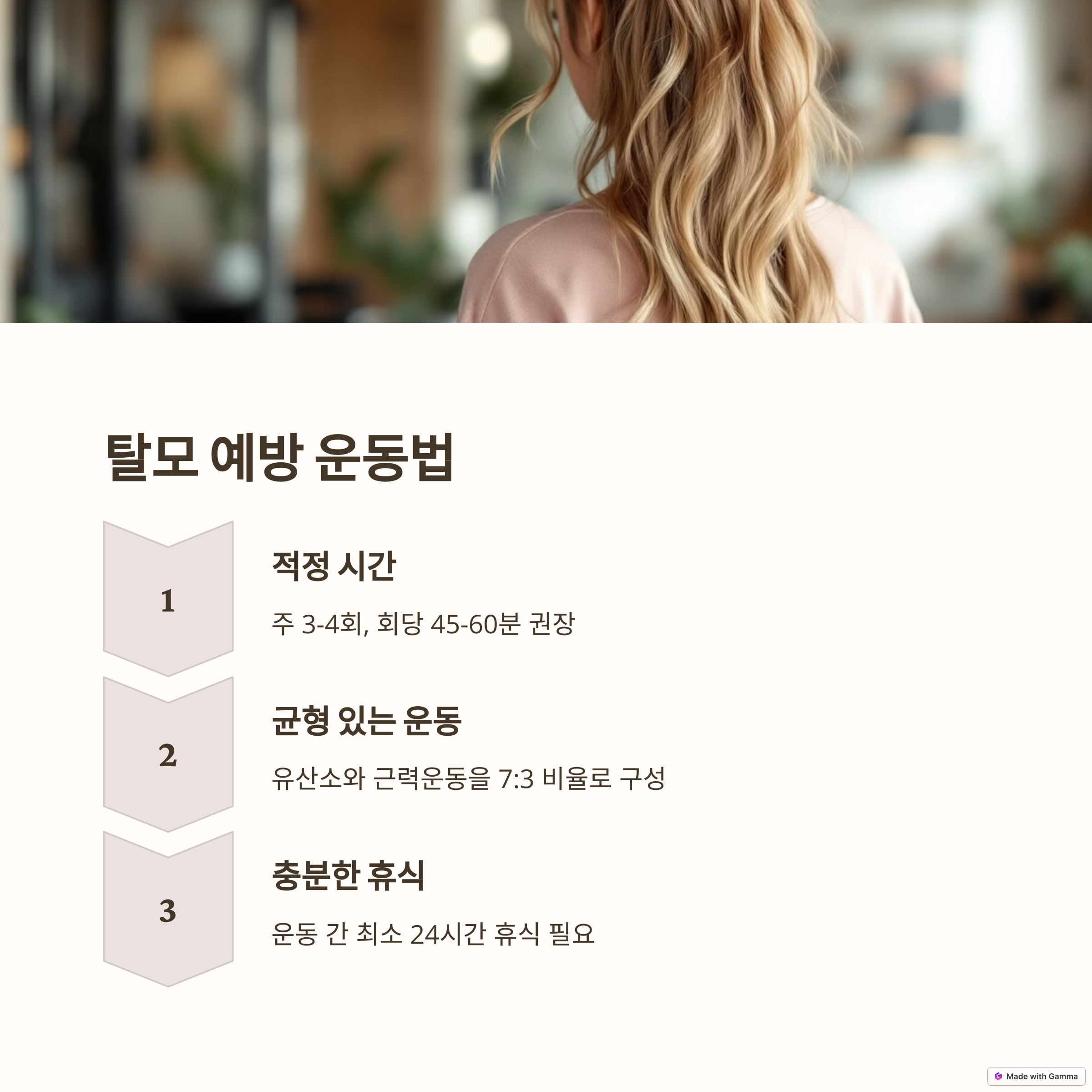 유산소 운동은 탈모 예방에 도움됩니다. 과도한 호르몬 변화는 관리 필요 청결 유지와 혈류 개선이 중요합니다.