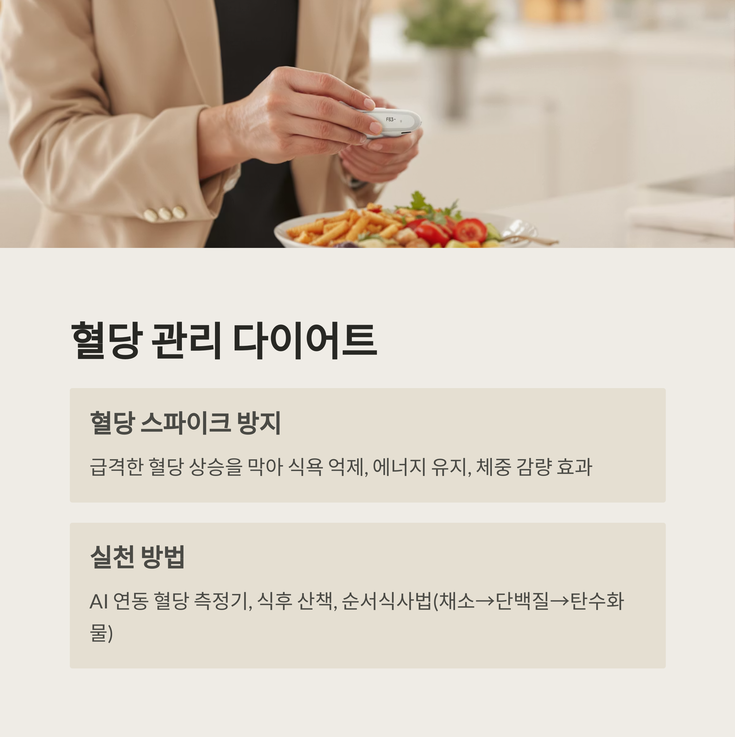 - 제로칼로리 간식, 식후 산책, 순서식사법(채소→단백질→탄수화물)