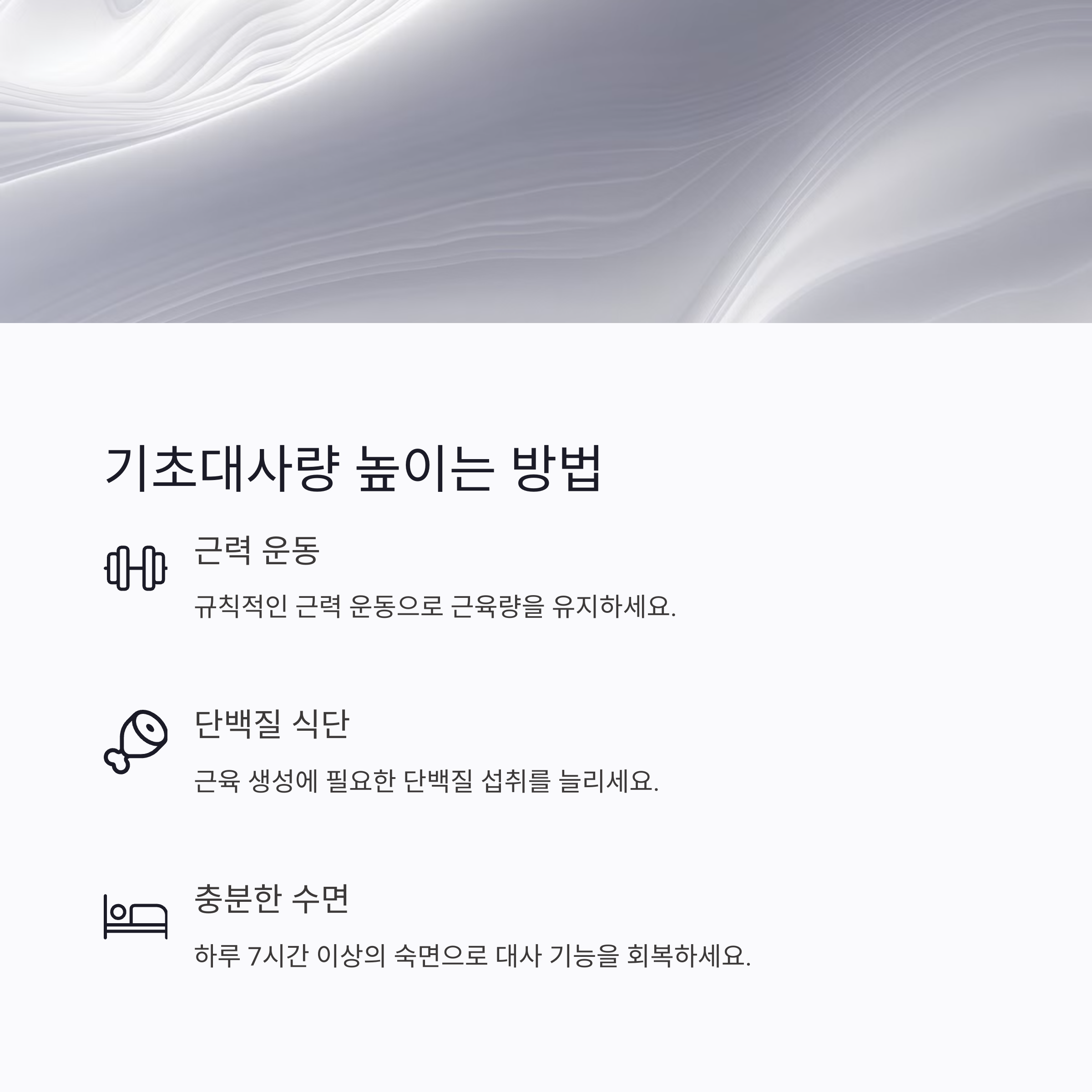 근력운동, 숙면, 식단 개선이 핵심입니다.